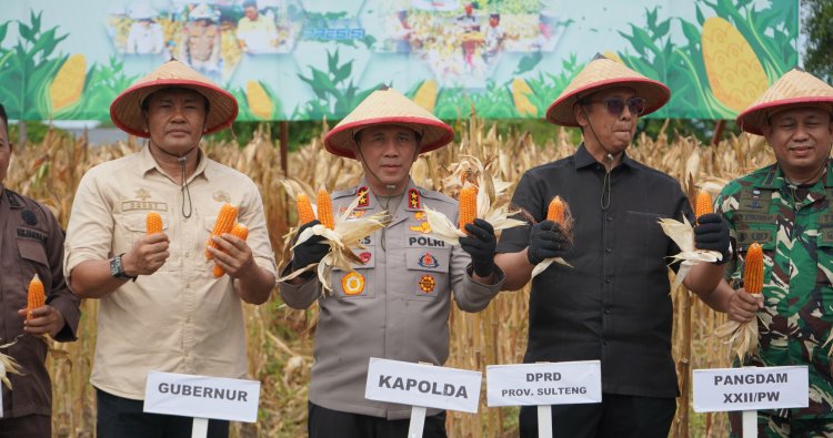 Setelah mengikuti kegiatan panen serentak oleh Kapolri, Kapolda Sulawesi Tengah melanjutkan acara kegiatan panen jagung secara simbolis didampingi oleh jajaran unsur Forum Komunikasi Pimpinan Daerah (Forkopimda) Provinsi Sulawesi Tengah dan Kepala Bulog Wilayah Sulawesi tengah, yang turut turun ke lapangan untuk memetik hasil bumi sebagai simbol keberhasilan kolaborasi lintas sektoral.